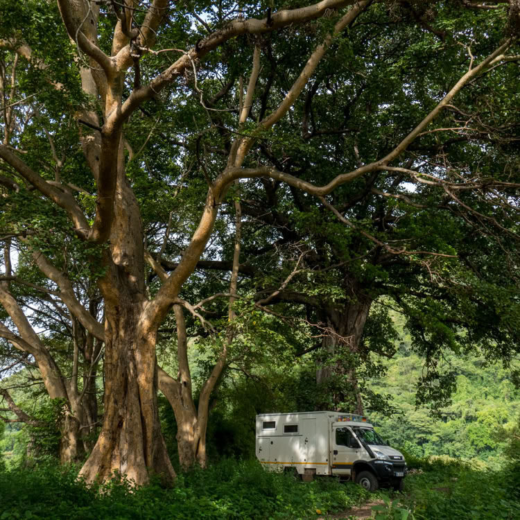 Tansania 2015. Gut bewacht von zwei Einheimischen unter einem Riesenbaum.