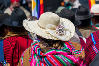 Zu H - wie Hut und Frisur hat uns Südamerika inspiriert! Mein Gott, was tragen die Cholitas, die indigenen Frauen, für Melonen auf dem Kopf. Dazu unter dem eigentlichen Rock zig Unterröcke und selbst gestrickte Kniestrümpfe. Dieses Outfit schützt gegen Sonne, Regen und hält auch noch warm.