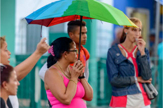 Kuba 2016. Ein bisschen gehört der (Sonnen-)Schirm zum Outfit.