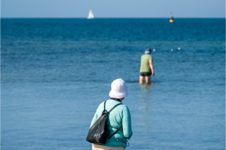 Deutschland 2016. Gehäkelt chic am Ostseestrand.