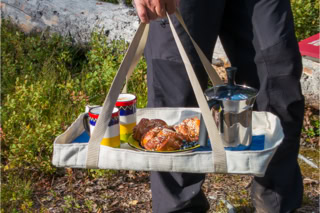 Schweden 2012, Muddus NP. Mit selbst gebasteltem Tablett zum Cappuccino-Platz.
