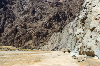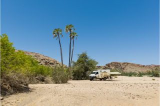 Nambia 2014, Kaokoveld. Gleich darauf begegnen uns wilde Elefanten im ausgetrockneten Flussbett.