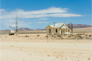 Namibia 2014, Verlassener Bahnhof auf dem Weg nach Lüderitz.