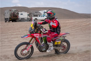 Peru 2018, San Juan. Ein Fahrer verirrt sich in die Wagenburg bei der Rallye Dakar.