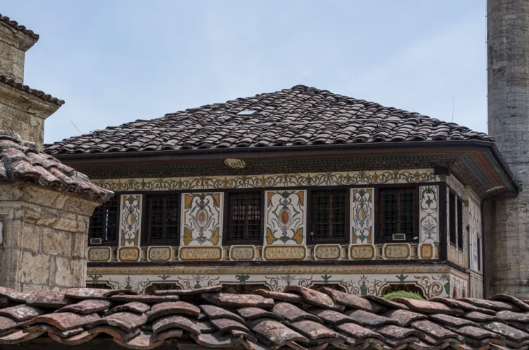 Die Bunte Moschee oder Pascha Moschee von 1495 ist die schönste Moschee, die wir bisher gesehen haben. Sie ist innen wie außen fast vollständig mit Arabesken ausgemalt. Obwohl reger Andrang von Reisegruppen herrscht, haben wir ziemlich lang die Moschee ganz für uns allein.