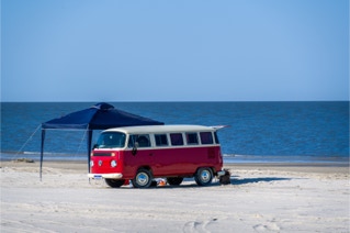 Fünf Kilometer fährt man zum Praia do Farol über den Strand. Aber kaum jemand findet den Weg bis auf ein paar Fischer mit Holzauto …