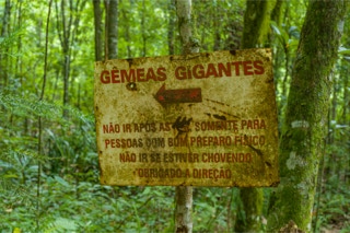 Auf dem Wanderpfad zur Cascata da Neblina, werden wir durch Schilder gewarnt, dass hier giftige Tiere lauern, Insekten Allergien verursachen, Rutschgefahr besteht, der Bach kein Trinkwasser führt und der Wasserfallpool zum Baden ungeeignet ist. Und selbst aus unserem „Schlafzimmerfenster“ beobachte ich am frühen Morgen eine dackeldicke, doppeldackellange Echse den Weg entlang wanken.