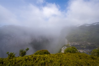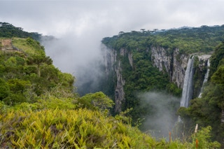 Weil die Abbruchkante wie mit der Säge getrimmt aussieht, heißt die Landschaft zwischen der Hochebene und der Küstenregion im Süden Brasiliens Aparados do Serra (Serra = Säge). Hier liegt auch der gleichnamige Nationalpark, der einen der letzten Araukarienwälder Brasiliens schützt, aber auch den berühmten Cânon do Itaimbezinho beherbergt.