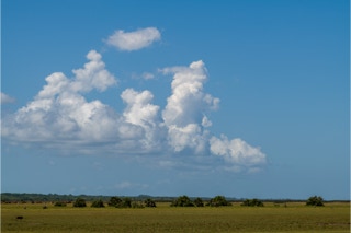 Zwischen den Wäldern gibt es natürlich auch Weiden. Die reichen bis an die Lagune ran. So ist zehn Meter vor uns die Lagune, das heißt Nationalpark, zehn Meter hinter uns der Weidezaun. Gegen Abend kommt ein Gaucho und kontrolliert den Zaun. Auf dem Pferd. Und ist unglaublich froh, dass er von uns Wasser bekommen kann.