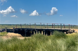Auf der Fahrt zum Parque Nacional da Lagoa do Peixe sehen wir zum ersten Mal, wie intensiv das Land forstwirtschaftlich genutzt wird. Wir fahren durch Kiefernwälder, so saftig grün, wie wir es noch nie gesehen haben. Kilometerlang begleiten sie uns rechts und links der Straße, gelegentlich zeigt eine blaue Bretterbude an, dass hier irgendwo auch Menschen wohnen. An der blauen Bude hält der Bus.