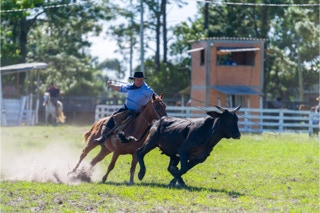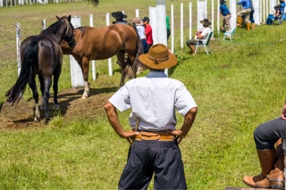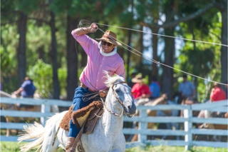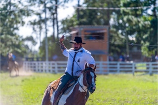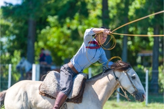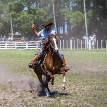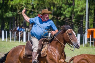 Sobald nämlich das Lasso um die Hörner geschwungen ist, passt der Gaucho auf, dass das Seil nicht zu stramm gezogen wird. Das Rind rennt weiter, der Gaucho reitet nebenher. Am Ende des Parcours wird das Seil gelöst. Ein Punkt für den Gaucho.