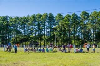 Der älteste Reiter geht wahrscheinlich auf die siebzig zu, der jüngste ist schätzungsweise fünf und der Papa reitet nebenher. Ihm wurde eine gemütliche Kuh rausgesucht. Wie witzig!