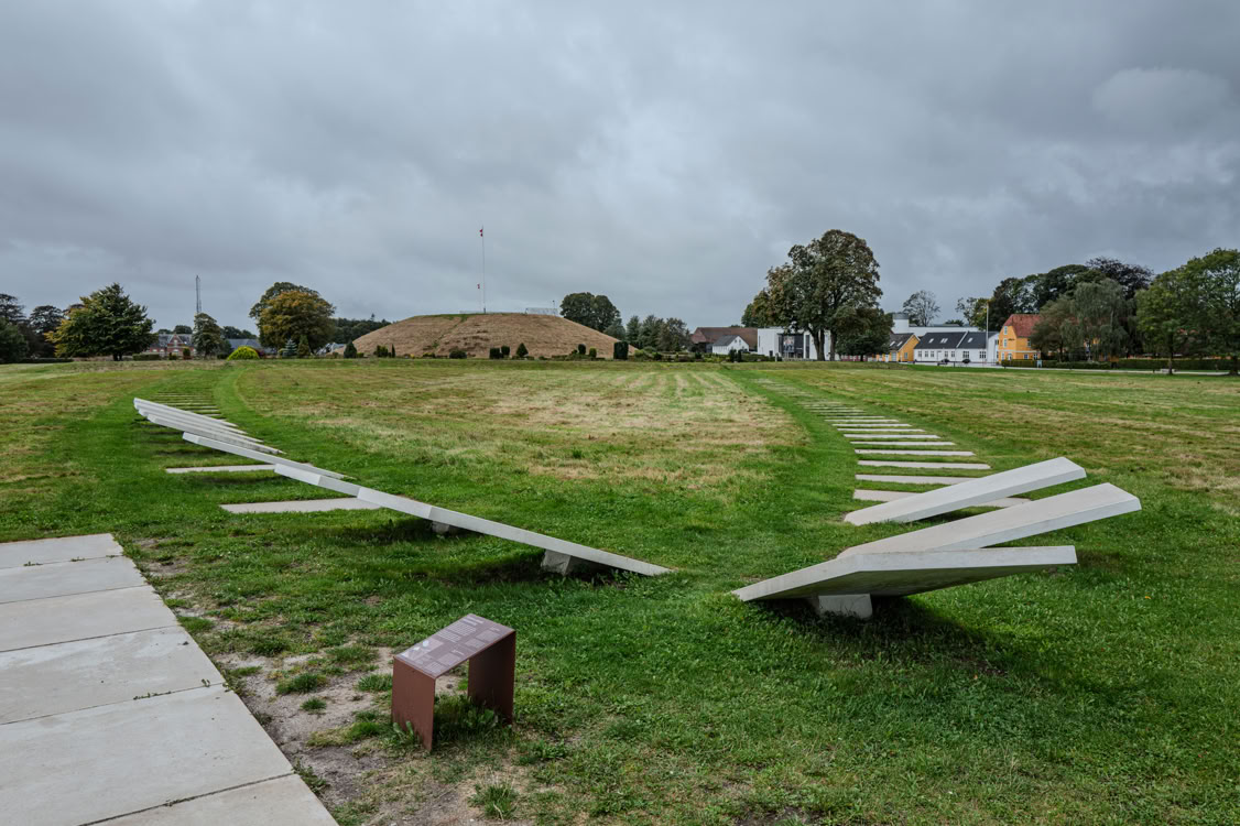 Lustiges Detail: Die Stelen ziehen sich bis zum Supermarktparkplatz von Jelling 😉