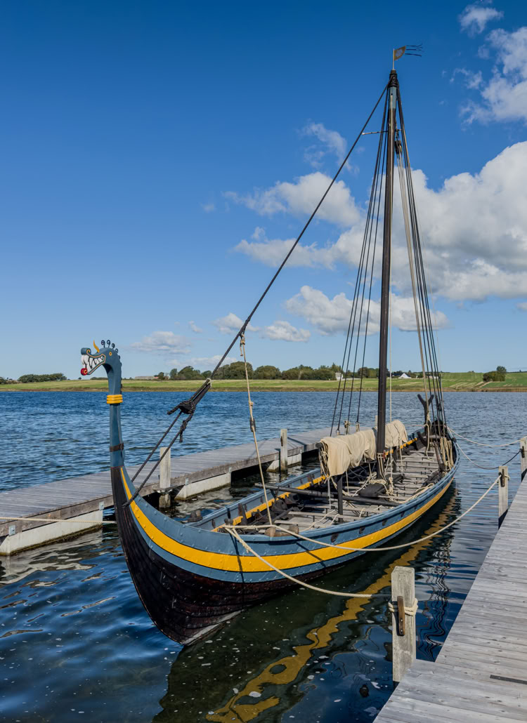 Tolle Idee: Das 1000 Jahre alte Grabschiff wurde nachgebaut und liegt als Ladbydragon segeltüchtig im Hafen.