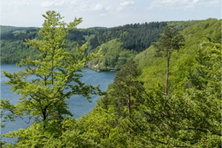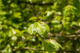 Frischen Buchengrün, blühende Fichten, Wildtierpark Edersee.