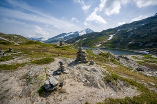 Aber nichts ist ohne eine positive Seite: Hier gibt es einen Blumenstand für die Friedhofsbesucher und wir erstehen gleich einen Strauß für unseren Besuch bei Freunden in Mailand. Einen Tag später fahren wir über den San Bernadino Pass weiter ins Sernftal/Glarus. Die Abschlusswanderung auf den Spuren eines Schneeschuh-Wanderwegs, den wir im Februar gewandert sind, ist das Tüpfelchen auf dem „i“ dieser Reise.
