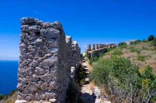 Jetzt sind wir an der schönsten Bucht des Peloponnes, der Navarino- oder zu deutsch Ochsenbauchbucht, machen eine kurze Wanderung zum Kastel Navarino, von wo wir einen herrlichen Ausblick auf die gesamt Bucht haben, erholen uns am Sandstrand, erfrischen uns im Meer und fahren dann - typisch für uns - zum Übernachten in die Berge.