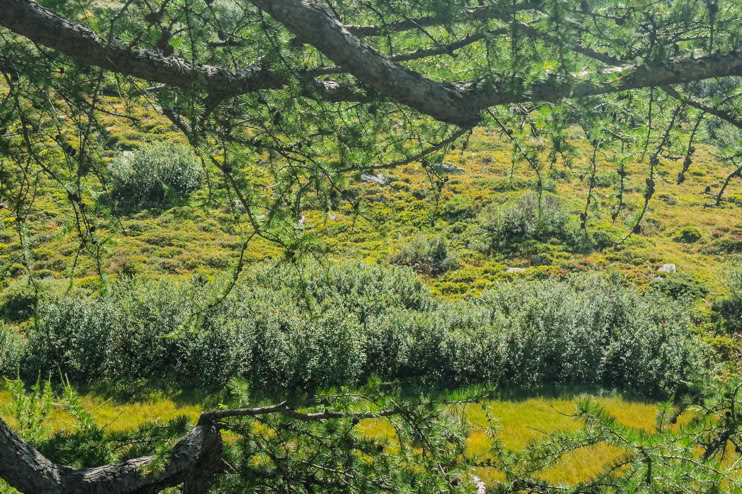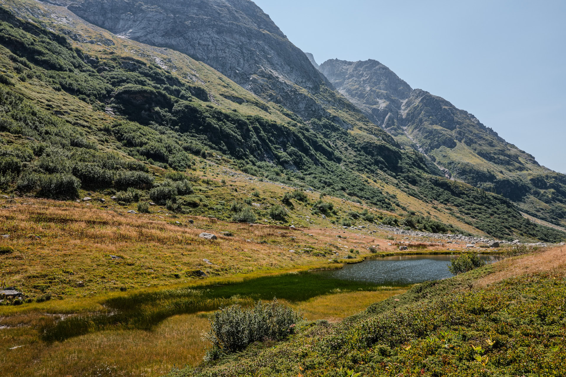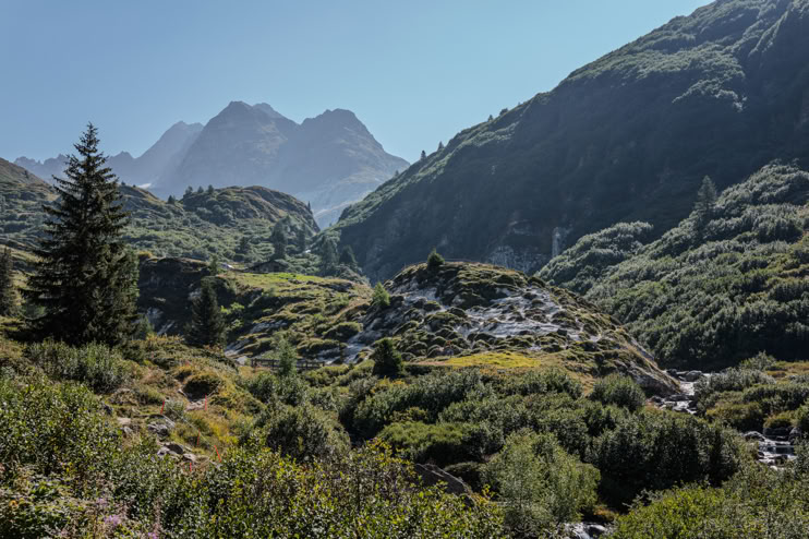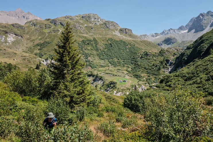 Heute machen wir es uns „gemütlich“ - wir nehmen den Postbus bis Brunnebiel, machen noch einen kleinen Umweg zur Alpe Blatt und steigen dann zum Halsesee auf.