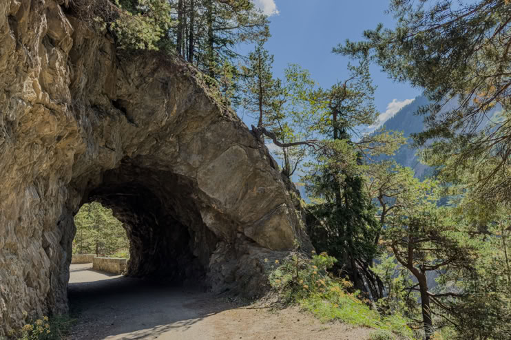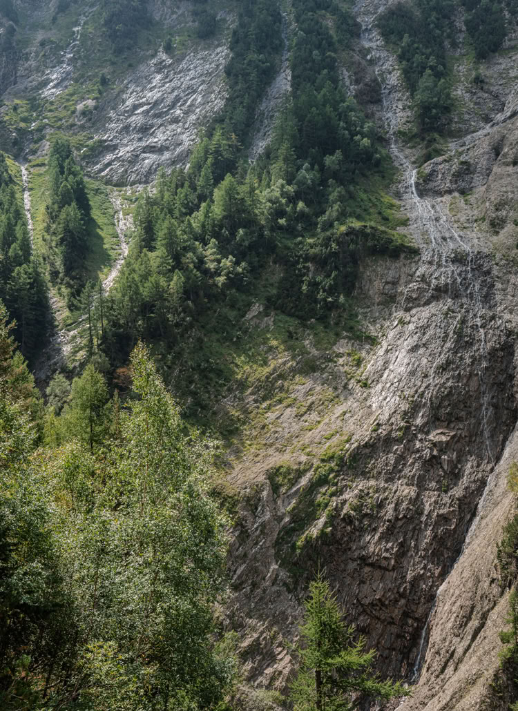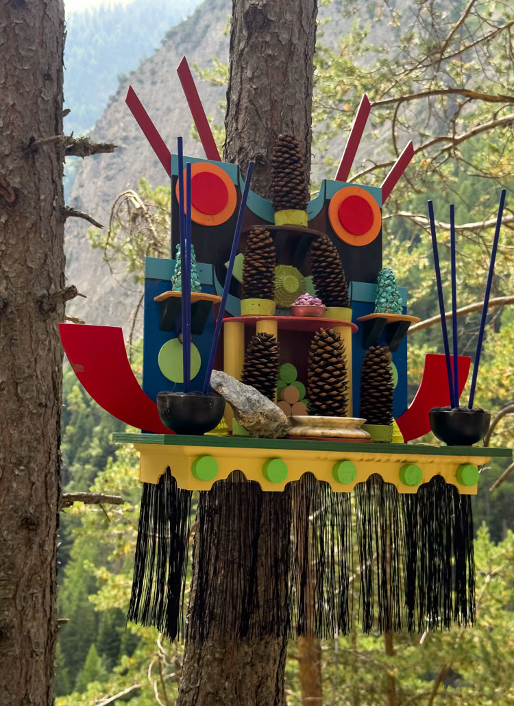 Durch die Twingi-Schlucht führt ein einfacher Spazierweg, nämlich die alte Zufahrt ins Binntal bevor der Tunnel gebaut wurde. Die Ausblicke nach unten zur Binna sind gewaltig, die Einblicke in die Ideen der ausstellenden Künstler - ehrlich gesagt, nicht immer nachvollziehbar.