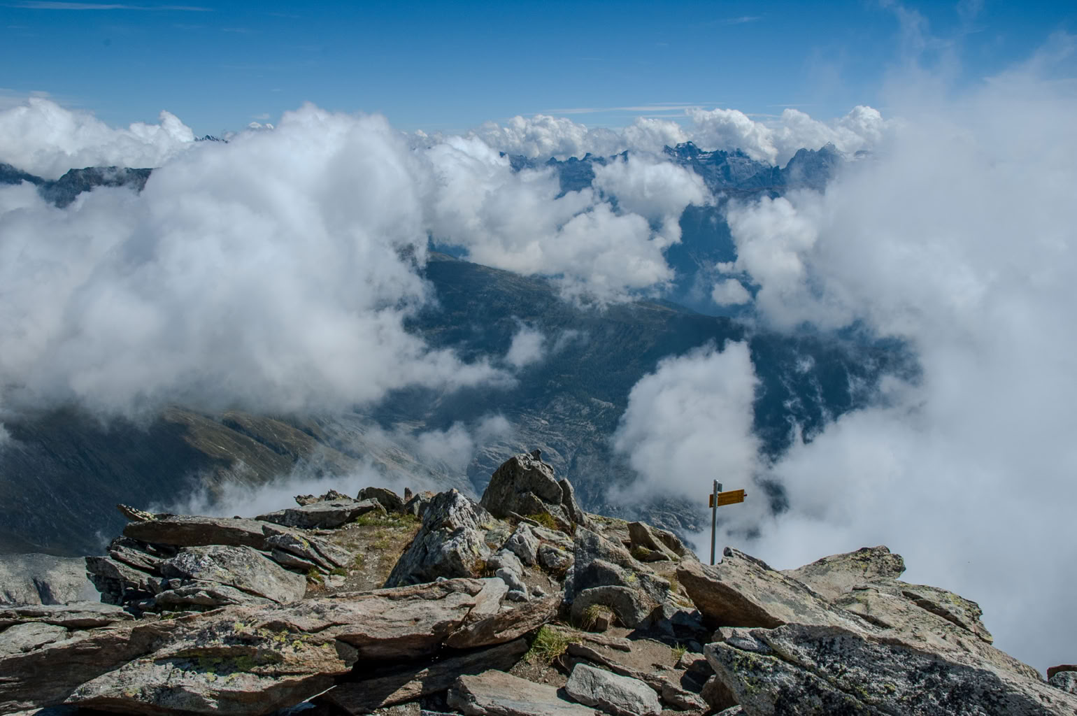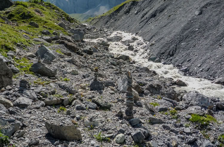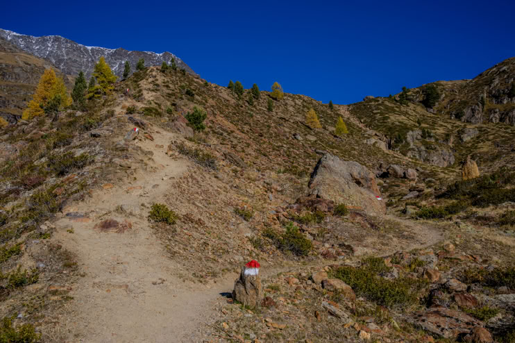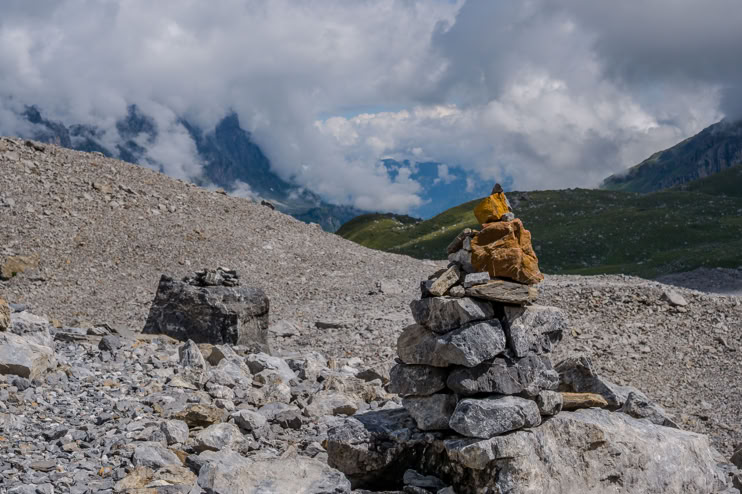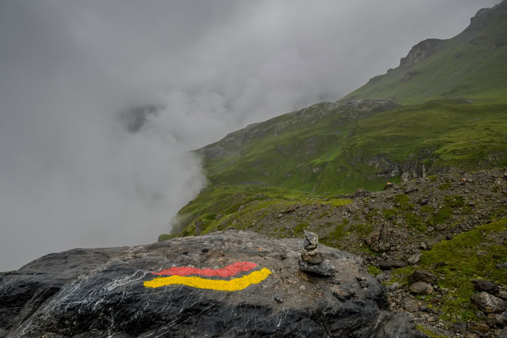 Egal ob mannshohe Statuen, Steinmännchen im Bach, rot-weiß-gestrichene Felsen oder gelbe Hinweisschilder - verlaufen kann man sich in der Schweiz eigentlich nicht. Nicht mal im Nebel, denn dann sind die Wege alle drei Meter markiert.