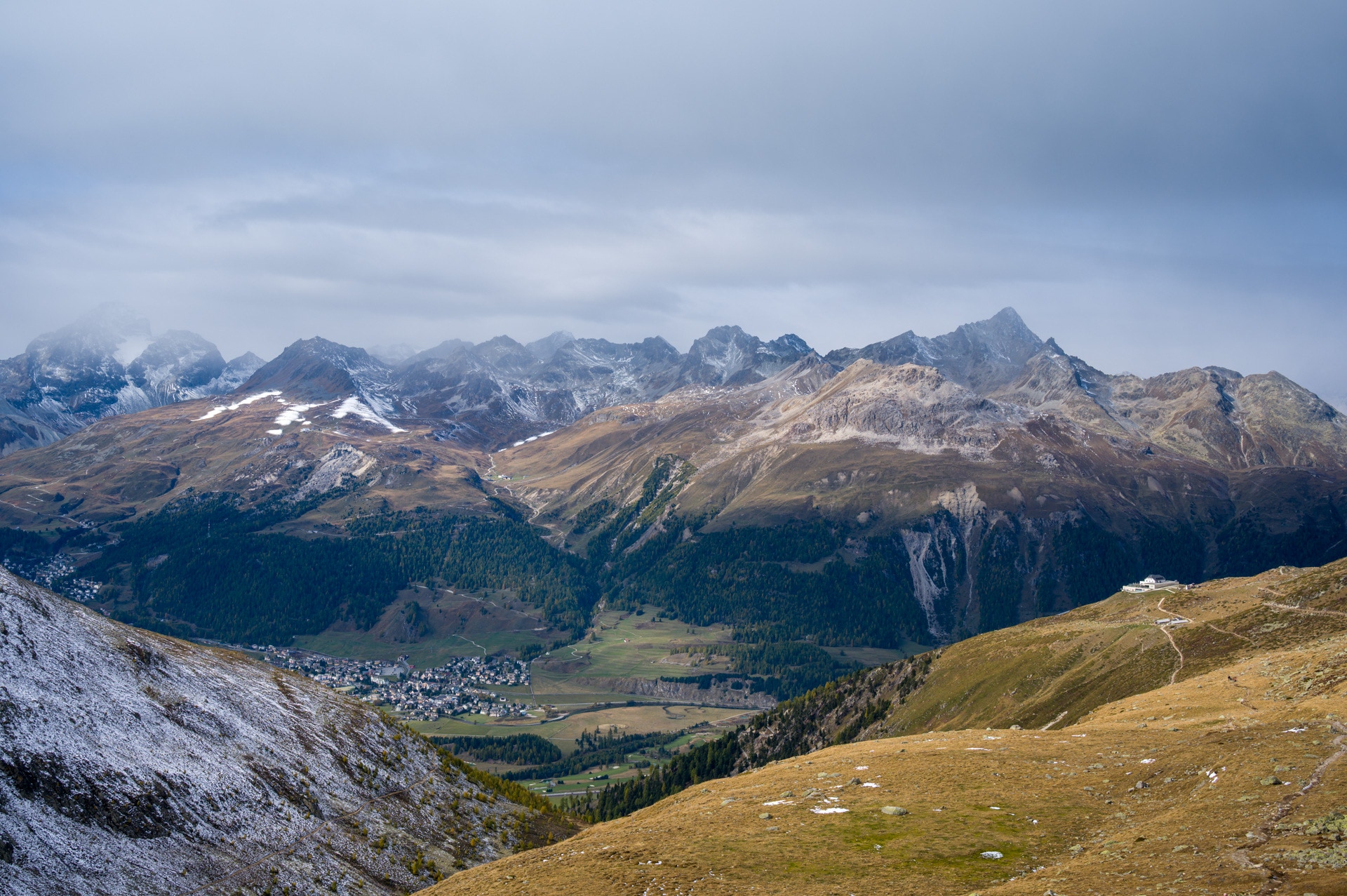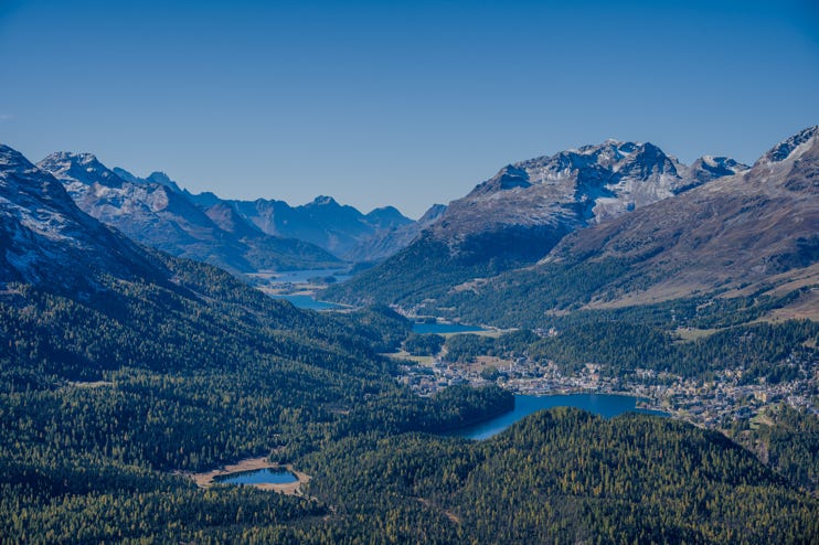 Muottas Muragl - das "gl“ spricht man als „j“ - ist eine Anhöhe im Oberengadin in der Nähe von Pontresina, die vielleicht den besten Ausblick über die Engadiner Seenplatte bietet. Diesen touristischen Wert haben die Schweizer schon früh erkannt. So früh, dass die Standseilbahn, die zur 2453 m hohen Anhöhe führt, 2007 ihr 100-jähriges Bestehen feiern konnte. Ein nicht unwitziges Detail ist der Preis für die erste Bergfahrt: 3 Schweizer Franken. Heute bezahlt man für ein Retoureticket 35 CHF! Und natürlich bauten die Schweizer nicht nur eine Seilbahn, sondern auch einen Berggasthof gleichen Namens auf Muottas Muragl.