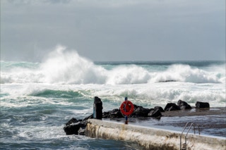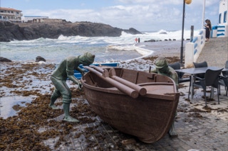 Wir haben die ersten Tage Sturmwarnung mit Böen bis zu 65 km/h und das ganze Dorf kommt hier zusammen, um dem Spektakel zuzusehen. Nein, das Dorf ist es natürlich nicht, sondern die Touristen. Das Dorf ist eher bemüht, die Fensterläden zu schließen und die auf die Straßen gespülten Steine wieder ins Meer zu schaffen.