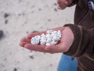 Außerdem sind auf Fuerteventura das Bauen von Schutzwällen am Strand verboten, aber sie sehen einfach überall. Es gibt blaue Kühe, Popcorn am Strand, einen großen Dessertlöffel für die Oma, Schuhe mit Afrika-Erfahrung, die sich auflösen und ein Dromedar, das auf dem Feld einen Holzpflug zieht. Man kann es kaum glauben, aber den Bauern mit seinem „Gefährt“ sehen wir dreimal. Beide sind echt!