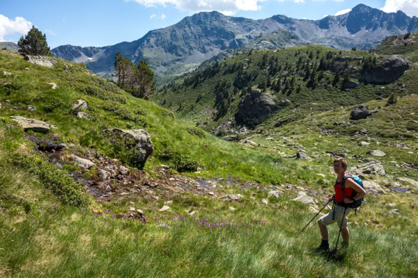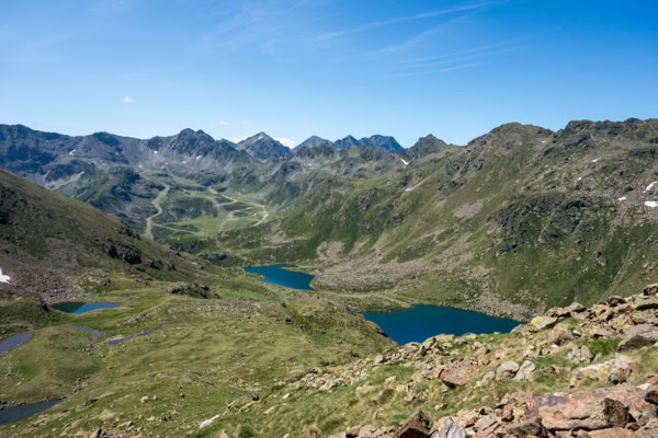 Selbst der Start der Wanderung auf einem riesigen Parkplatz mit Aussicht auf die jetzt kahlen Skipisten ist gruselig (siehe Diashow). Aber drei Ecken weiter landen wir in der blumigen Seenlandschaft der Tristaina Seen. Einfach nur herrlich!