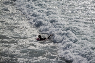 Die ersten Tage hängen an allen Stränden die roten Flaggen: Badeverbot! Die Rettungskräfte werden ziemlich hektisch, wenn ein Verrückter sich über das Verbot hinwegsetzt. Zunächst wird die Trillerpfeife gezogen - nützt nichts. Denn der Wind ist zu stark, man hört einfach nichts. Dann wird über den Strand gerannt und der Übertäter aus dem Wasser gezerrt.