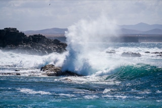 Zwischen faszinierend und schaurig gibt sich das Meer. Sturmböen bis 65 km/h sind nicht selten auf Fuerteventura im Februar.