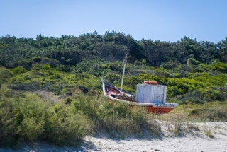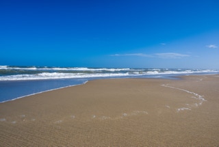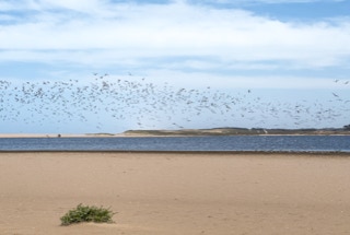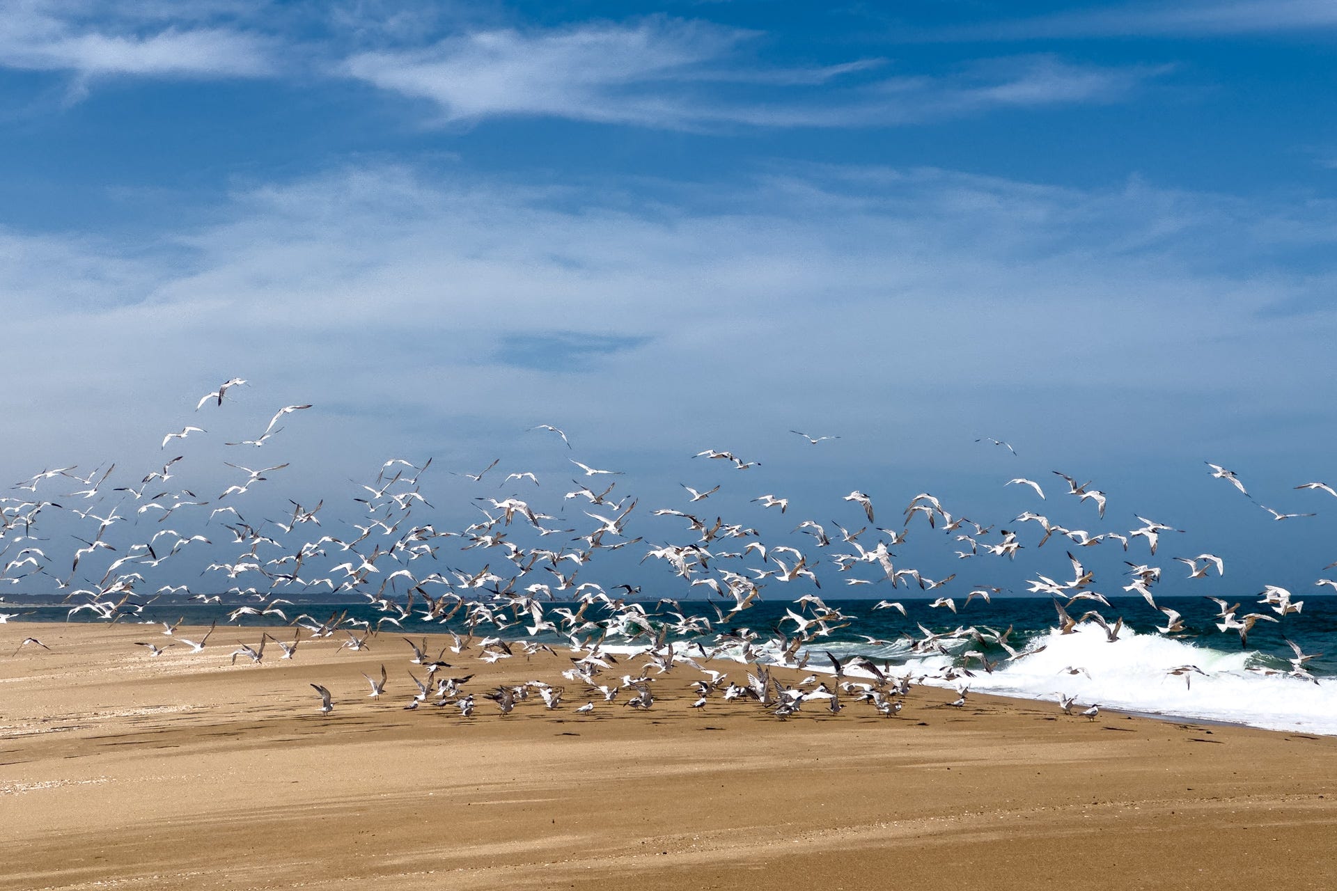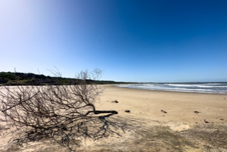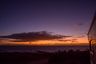 Unser Reiserhythmus passt sich diesem Ziel an - wir sind noch langsamer als sonst. Wir bleiben jeweils zwei bis drei Tage an einem Plätzchen, irgendwo hinter einer Düne versteckt oder im Eukalyptuswald oder einfach an einem unendlichen Strand. Jeden Tag kilometerlange Strandspaziergänge, fantastische Sonnenuntergänge, Stürme und Gischt. Mal kommt kein Mensch, mal kommt ein Mensch. Der hat einen Hund dabei oder sitzt auf seinem Moped oder Quad und fährt ein bisschen durch die Dünen.