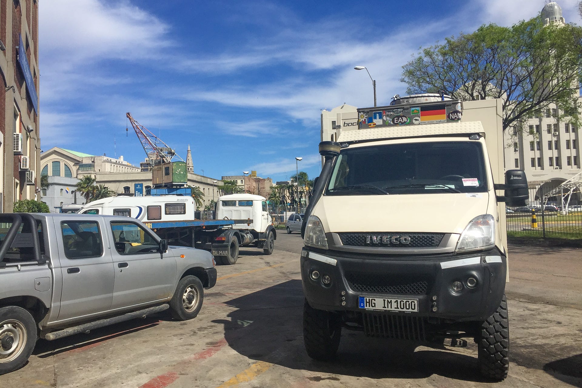 Die Gesamtkosten für die Verschiffung unseres Autos (L6,3 x B2,2 x H3,2 m; 5,5 t) belaufen sich auf 4000 EUR inklusive der Gebühren in Hamburg und Montevideo sowie einer Transportversicherung.