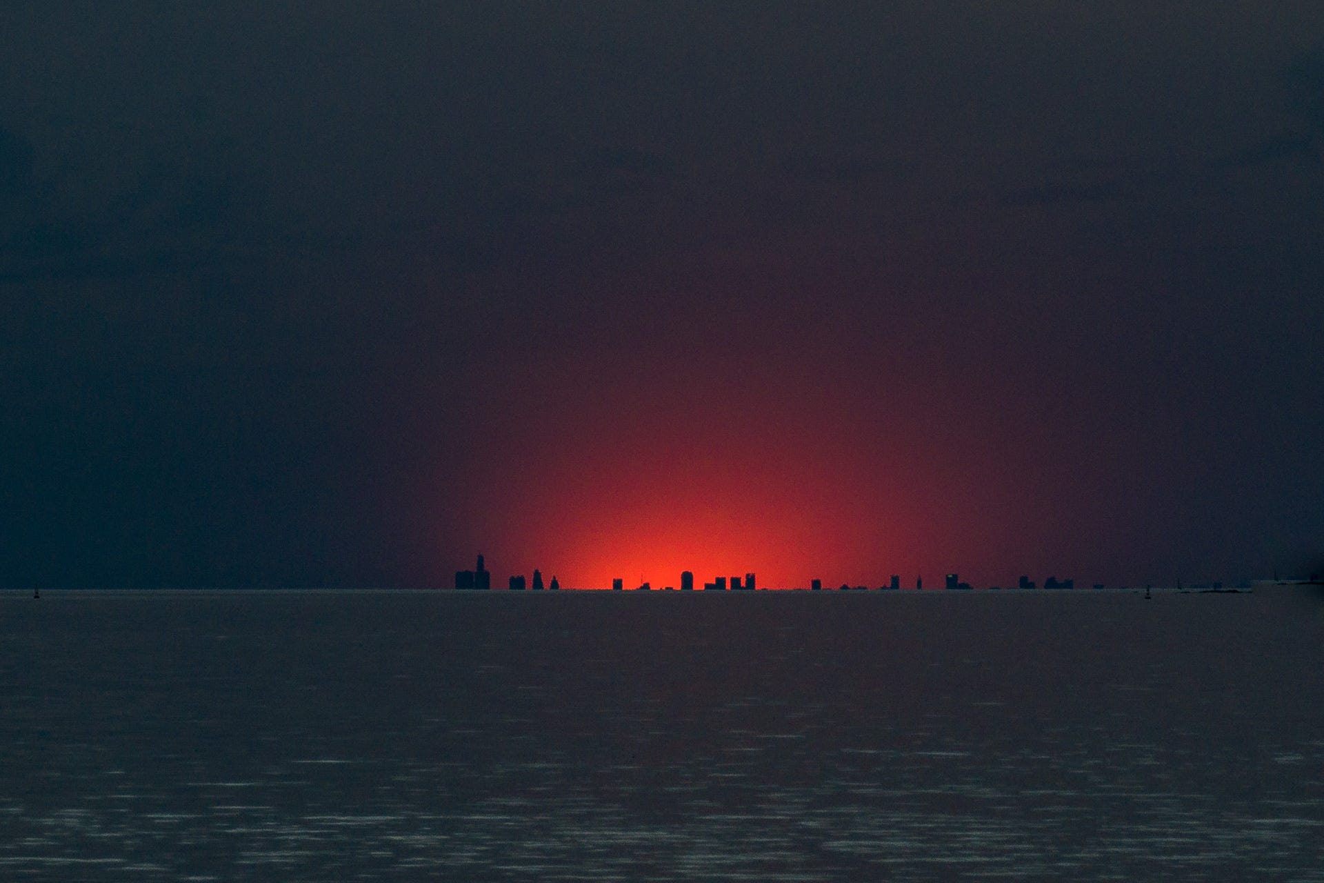 Die Sonne geht direkt hinter der Kulisse von Buenos Aires unter. Die Stadt am anderen Ufer des Flusses ist immerhin 50 km entfernt und so sieht man nur die Spitzen der Hochhäuser. Für dreißig Sekunden bietet sich dieser Anblick, den wir blitzschnell mit der Kamera festhalten.