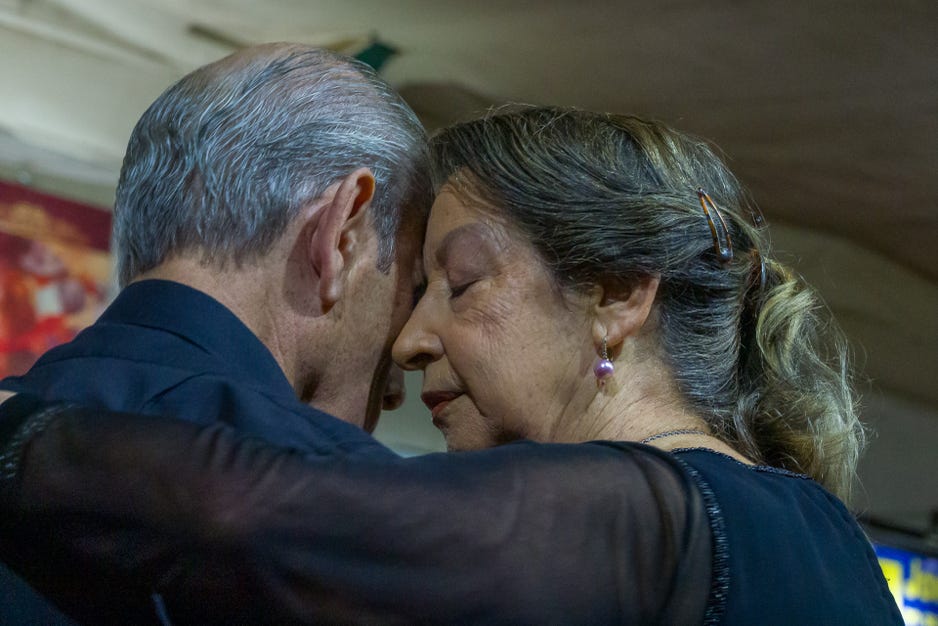 Gerade schaffen wir es noch rechtzeitig um 19:30 Uhr zum Mercado de la Abundancia, wo jeden Sonntagabend in den Joven Tango Club geladen wird: Chansonette, Musiker, Kabarettisten und Einlagen eines Professors mit seinen Tangoschülern stimmen ein, bevor das Publikum selbst das Tanzbein schwingt. Im Alter von 30 bis geschätzt 80 schiebt man sich im 1-2-Tango-Schritt vorwärts. Nein, das trifft es nicht - die meisten bewegen sich, wie wenn sie schon bei Weltmeisterschaften im Lateinamerikanischen Tanzen dabei gewesen wären. ¡Grande aplauso!
