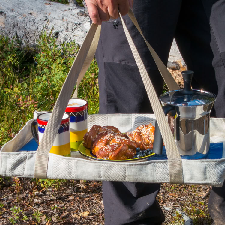 Schweden 2012, Muddus NP. Mit selbst gebasteltem Tablett zum Cappuccino-Platz.