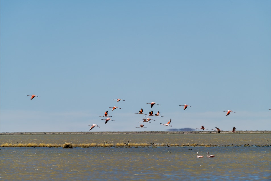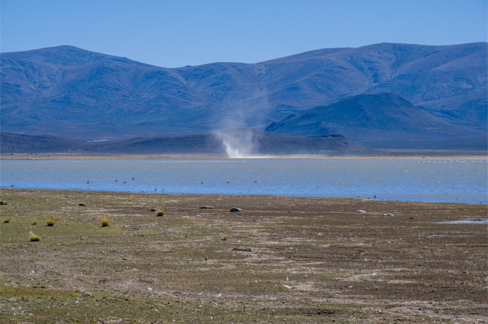 Aber bevor wir nach Humahuarca fahren, drehen wir noch eine kleine Runde zur Laguna de los Pozuelos auf 3700 m. Hier erwarten uns Flamingos, Vikunjas, eine Eule und Wind! Nachts fällt das Thermometer auf -8 °C und wir haben quasi Spätsommer. Das wird die kälteste Nacht während der gesamten Etappe. Aber nach Sonnenaufgang steigt die Temperatur viertelstündlich um 1 °C an. Wir landen bei einer kleinen Wanderung entlang der Lagune bei angenehmen 17 °C.