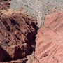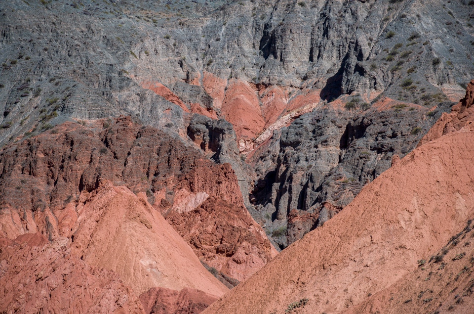 Rot, hellorange, dunkelorange, hellgrau, dunkelgrau, grün, schwarz und weiß - das sind die Farben der Berge hier, die einfach so rechts und links der Straße empor ragen! Alle paar Meter eine neue Kombination dieses Farbspektakels. Kann das eigentlich noch besser werden?