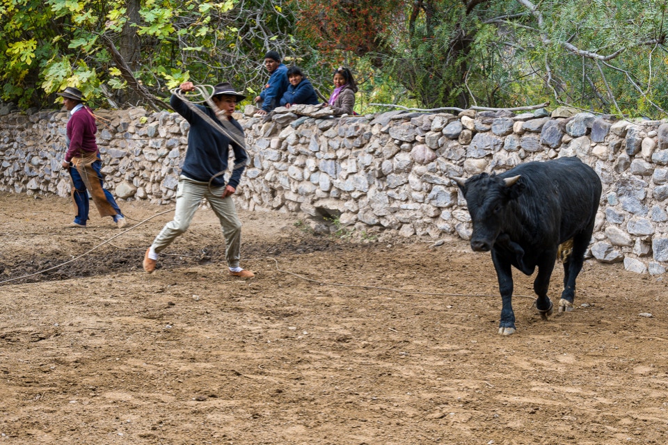 Wir werden Zeuge eines Spektakels der besonderen Art. Sicher nichts für jeden, ganz sicher nichts für Tierschützer. Für die einheimischen Gauchos im Alter von 7 bis 70 scheint es eine Gaudi zu sein. Wir müssen ab zu und mal weg schauen.