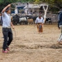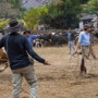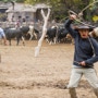 Es ist Samstag. Überall sind Autos entlang der Straße geparkt, alle Leute laufen in eine Richtung, Kinder mit Lasso unterm Arm. Da muss was los sein. Da muss man anhalten.