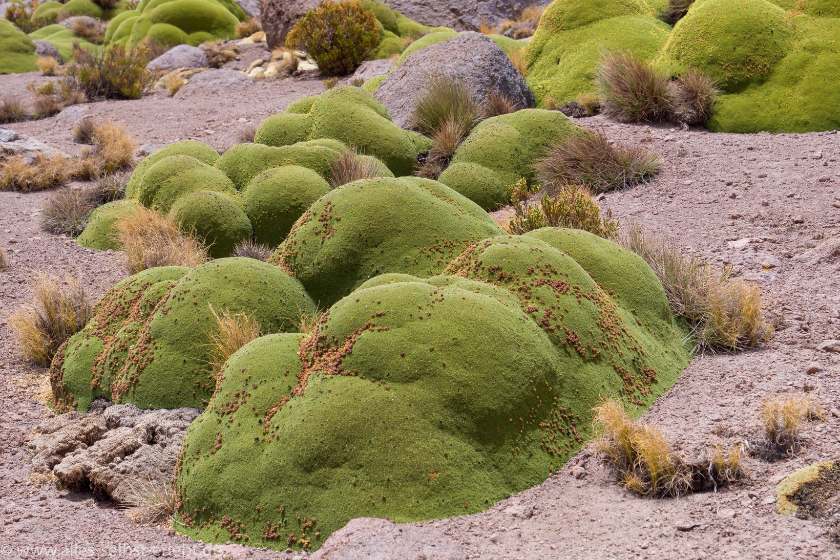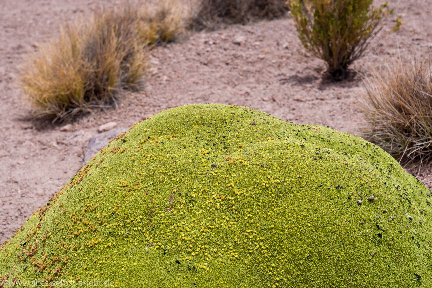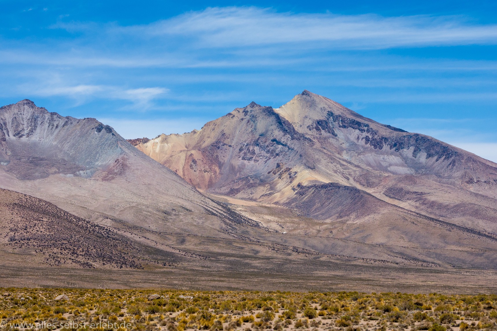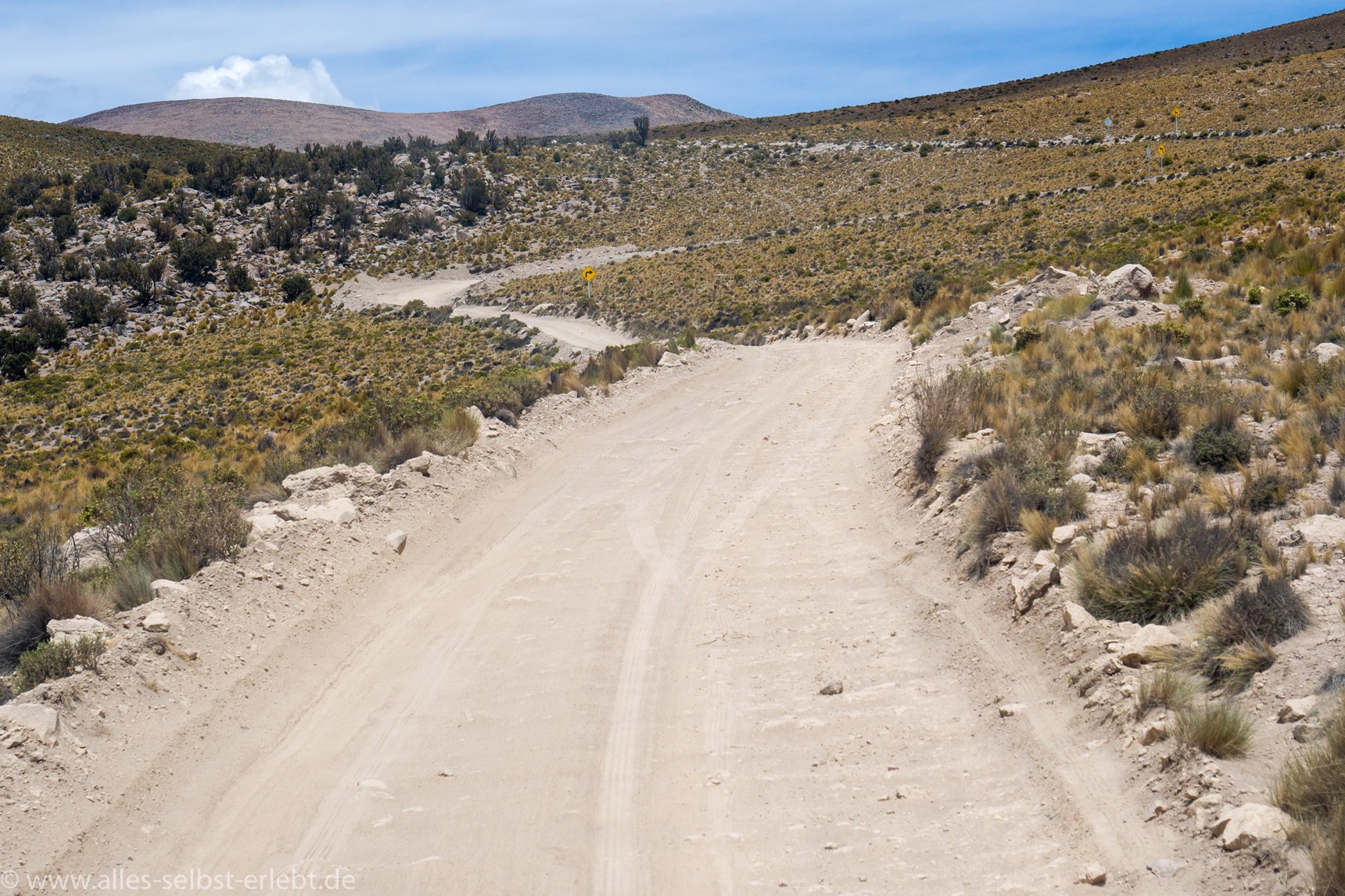 Heute fahren wir 150 km Schotterpiste, teilweise so langsam, dass uns unsere eigene Staubwolke überholt. Aber das nehmen wir gerne in Kauf, wir werden mit gigantischen Blicken auf die Anden-Bergwelt mit schneebedeckten Vulkanen, auf die blendende Salzebene Salar de Surire und nicht zuletzt mit einem Sitzbad im dampfenden Thermalpool der Termas de Pollequere belohnt. Wir kommen also unserem Versprechen nach, ab sofort nur noch über 4000 m in heißen Termalpools zu baden…