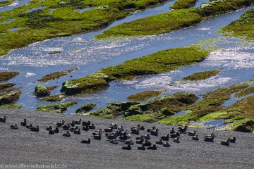 Die Ebbe gibt die bemoosten Steinbänke…