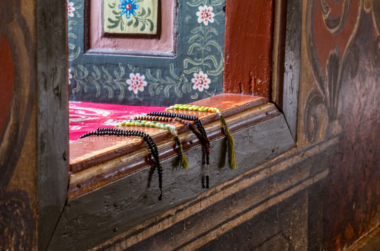 Bis auf einen Oberaufpasser, der unter irgend einem Vorwand - Gebetsketten ordnen, Koran auf- und zuklappen, etc. - guckt, ob wir noch andächtig sitzen. Er ist ganz besonders streng. Ich bekomme eine Rüge, weil ich meine Schuhe auf die unterste Treppenstufe stelle. Da ist noch Teppich verlegt! Und einem 15-Jährigen dreht er die Nase um, so dass dieser laut heulend vom Hof flüchtet …