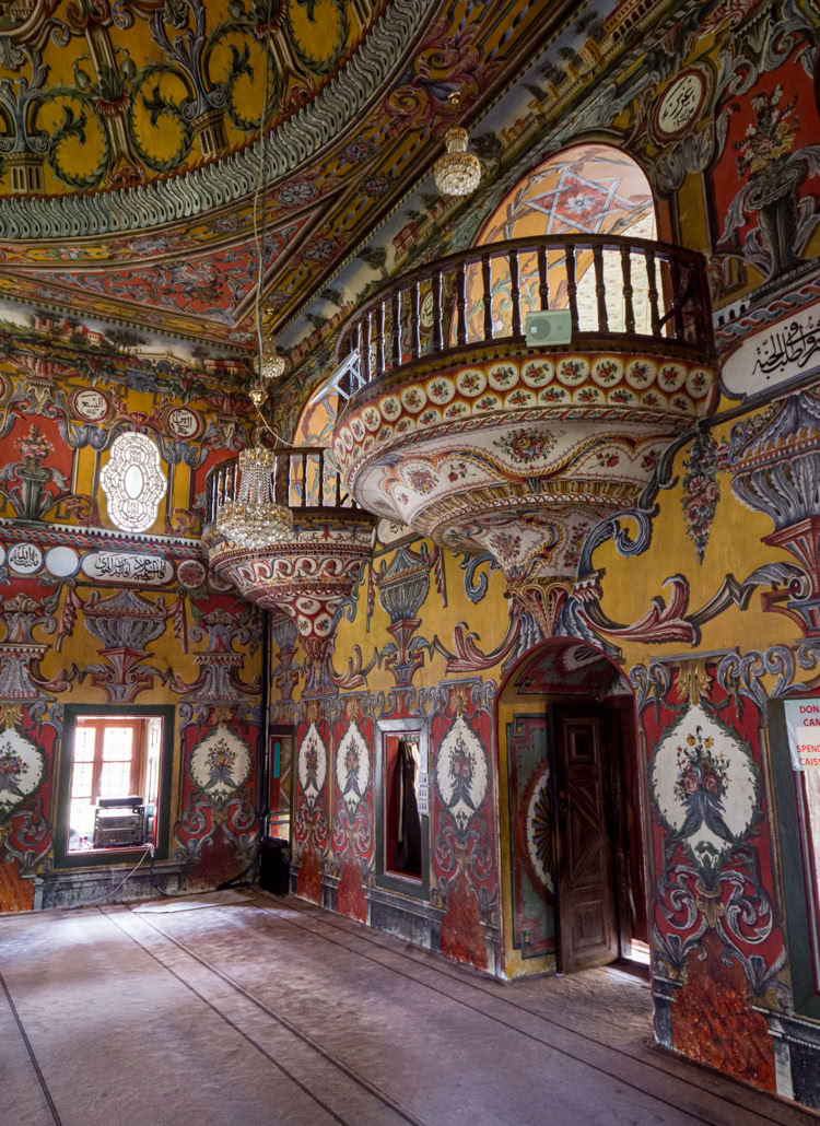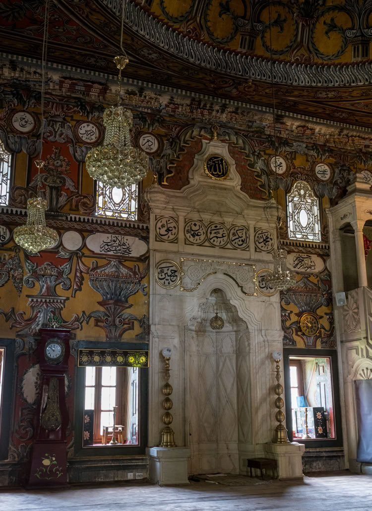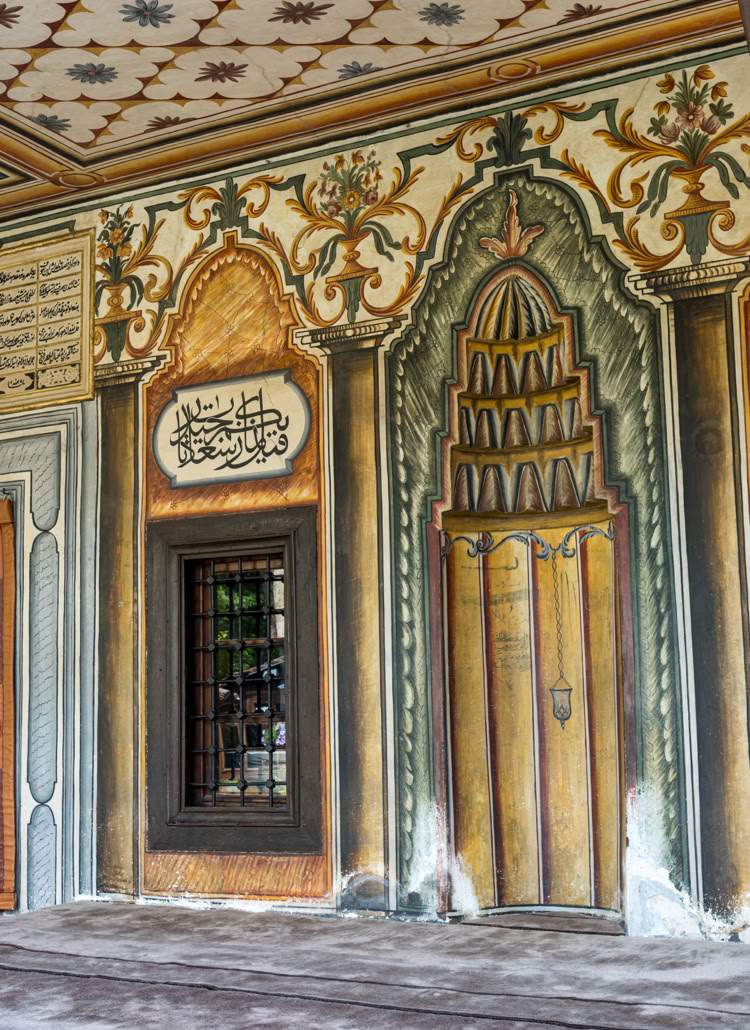Die Bunte Moschee oder Pascha Moschee von 1495 ist die schönste Moschee, die wir bisher gesehen haben. Sie ist innen wie außen fast vollständig mit Arabesken ausgemalt. Obwohl reger Andrang von Reisegruppen herrscht, haben wir ziemlich lang die Moschee ganz für uns allein.