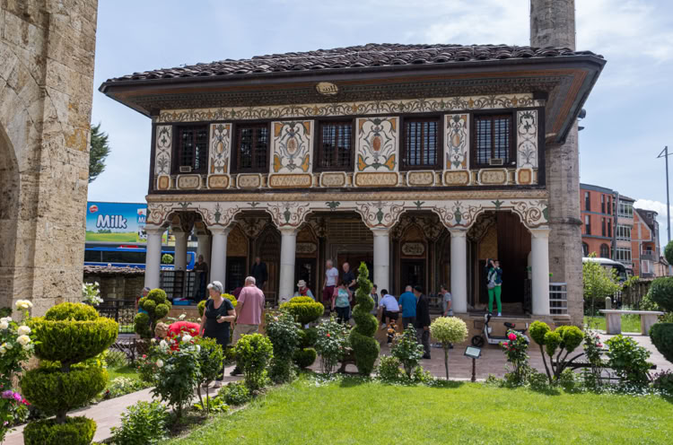 Auf dem Weg zur Bunten Moschee durch kleine Nebenstraßen machen wir halt in einem winzigen Café. Die junge Besitzerin spricht fließend englisch, hat eine Schwester nebst Schwager in Mainz, die inzwiwchen deutsche Pässe besitzen. Sie selbst hat auch schon ein paar Wochen in Deutschland gearbeitet und nach dem intensiven Gespräch über Deutschland und Nordmazedonien dürfen wir - egal wie wir uns anstellen - auf gar keinen Fall unseren Espresso bezahlen.