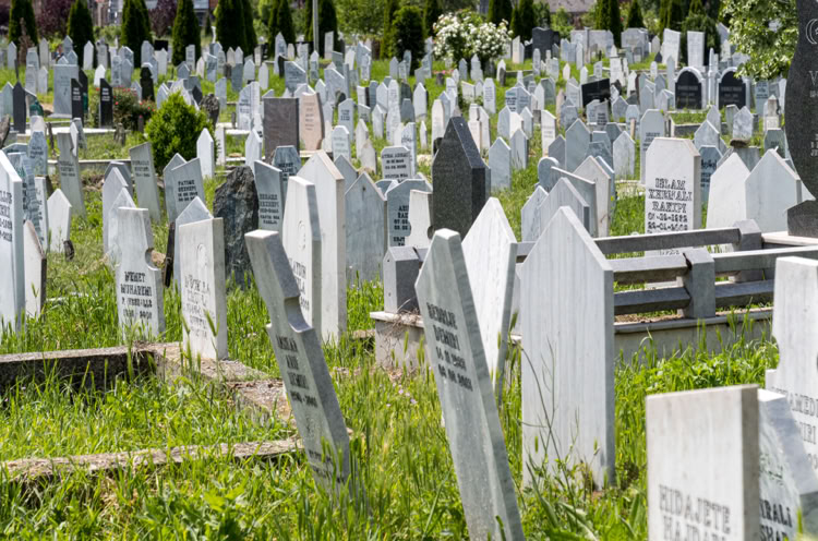 In Tetovo sehen wir auch einen muslimischen Friedhof. Dieses Mal ist er in gehöriger Distanz zur nächsten Moschee, sodass niemand in Richtung Grab beten muss.