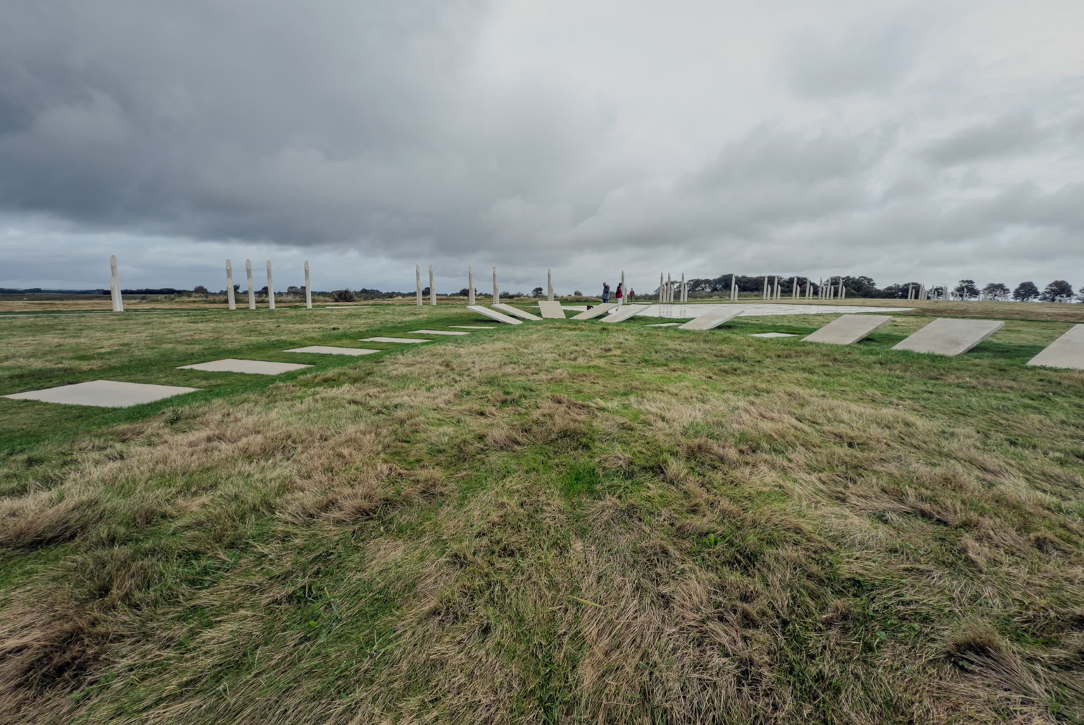 Heute sind sowohl die Steinplatten der Schiffssetzung, als auch die Holzpalisaden-Einzäunung durch Betonplatten bzw. -stelen nachgebildet.