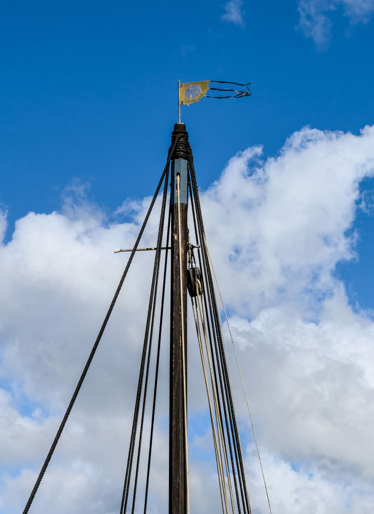 Tolle Idee: Das 1000 Jahre alte Grabschiff wurde nachgebaut und liegt als Ladbydragon segeltüchtig im Hafen.