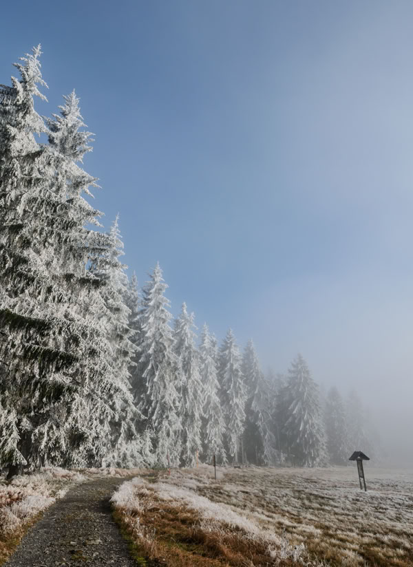 Wie Friedrichshöhe im Thüringer Wald für uns zum Kultstatus gelang, ist so genau nicht mehr auszumachen. Aber irgendwann haben wir die ehemals kleinste eigenständige Gemeinde der DDR mit damals 32 Einwohnern zu einem unserer Lieblingsorte gekürt. Friedrichshöhe liegt auf 820 m direkt am Rennsteig auf einer kleinen Hochebene. Von Siegmundsburg führt eine Stichstraße hierher, für Autos ist dann Schluss, für Wanderer wird’s jetzt erst richtig interessant: Moorlehrpfad, Dreistromstein, Eisfelder Ausspanne, Werraquelle sind nur einige Wegepunkte in der Nähe. Die Entfernungen lassen sich beliebig variieren. Die Jahreszeiten übrigens auch, denn im Winter sind die breiteren Wege als Loipen gespurt.