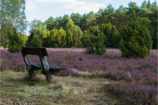 Zwar sind wir nicht mehr ganz in der Heideblüte-Hoch-Zeit gekommen, finden aber immer noch genügend lilafarbene Teppiche vor uns ausgebreitet. Meist sind wir auf unseren Radtouren allein auf weiter Flur, genau so wie wir es mögen. Unsere Mountainbikes machen sich gut in dem oft sandigen Terrain - trotzdem fahren hin und wieder vollkommen unsportlich aussehende Leute ziemlich leichtfüßig an uns vorbei. Das e-Bike hat seinen Siegeszug angetreten - für echte Strampler frustrierend :-)