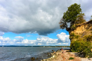 Bis jetzt hört es sich an, als ob wir auf einer Städte- und Kulturreise wären. Sind wir nicht, beziehungsweise nicht nur. Wie immer suchen wir uns ruhige, etwas abgelegene Plätze zum Übernachten und von dort erkunden wir die Umgebung mit dem Rad - und zwar jeden Tag. Unsere Rundtouren führen dann auch an den oben erwähnten Seebrücken vorbei, unsere Zeit aber verbringen wir in der Natur. Wir sehen zwischen den Dünen am Darßer Ort die Hirsche bei der Brunft und warten bei Sonnenuntergang am Fliegerberg (Rügen) auf den Seeadler, der leider nicht erscheint. Wir fahren durch den Darßer Urwald, spazieren auf Rügen entlang der Steilküste und in den Zicker Bergen, sonnen uns am Strand und springen sogar kurz (!) in die 17 °C kalten Fluten.